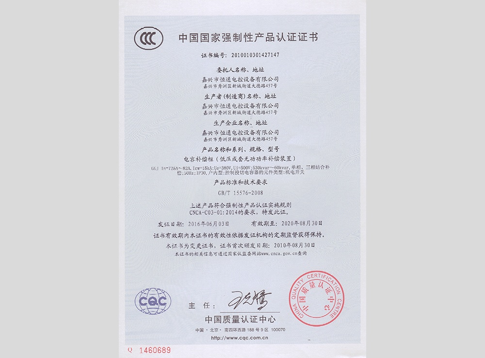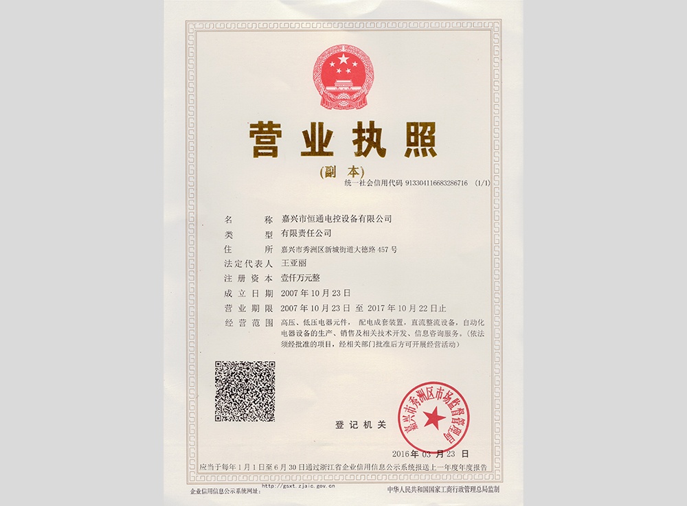 設立嘉興市恒通電控設備有限公司,生產(chǎn)經(jīng)營(yíng)高低壓成套配電設備。
