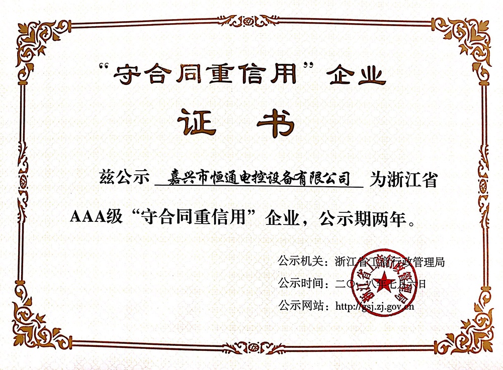 被評為浙江省工商企業(yè)AAA級“守合同重信用” 單位。